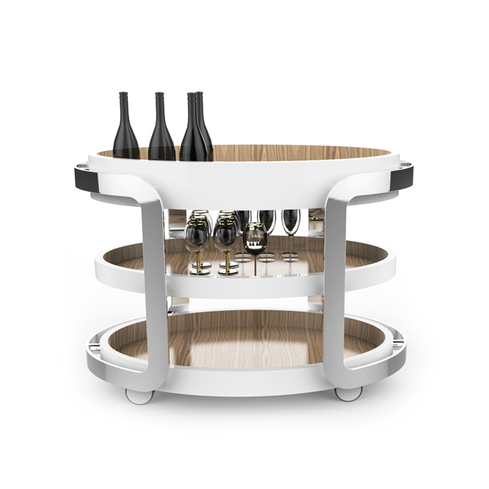 Collection: Contour Type: Trolley Code: TRL-CNT-002 Dim: 1100 x 700 x 900 (h), 1200 x 720 x 900 (h) Material: Spray painted wood, wood with laminate