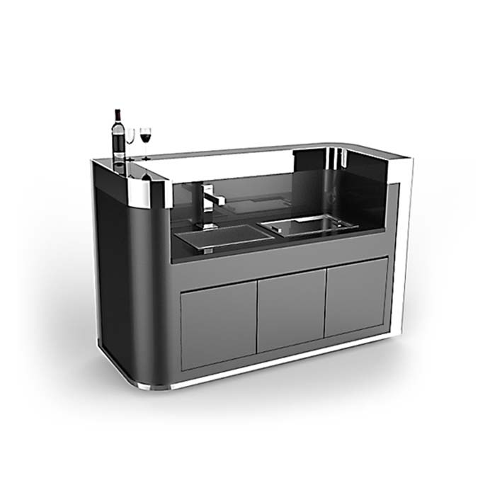 Collection: Customised Type: Mobile barfront Code: MBB-CUS-005 Dim: 1800 x 750 x 1220 (h) Weight: 100 – 300kg each Equipment: Tap, sink with drainage, ice chest