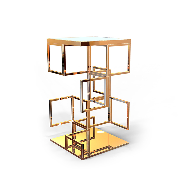 Collection: Diamond Type: Cocktail table Code: CKT-DIA-001 Dim: 600 x 600 x 1100 (h) Material: LED top, 304 stainless steel, rose gold plated
