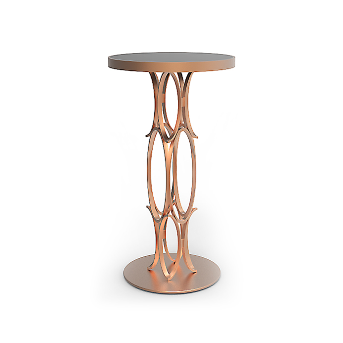 Collection: Oval Type: Cocktail table Code: CKT-OVL-006 Dim: 600 x 600 x 1100 (h) 600 x 600 x 950 (h) Material: Tempered glass top, 304 stainless steel, rose gold plated