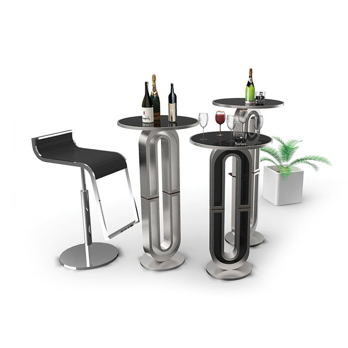Collection: Play Type: Cocktail table Code: CKT-PLA-001 Dim: Ø600 x 1050 (h), Ø600 x 1150 (h), Ø600 x 1250 (h) Material: Tempered glass top, 304 stainless steel, hairlined