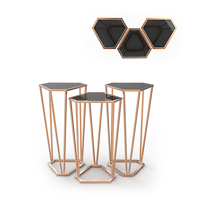 Collection: Slice Type: Cocktail table Code: CKT-SLC-002 Dim: CKT-SLC-002-1S – 600 x 600 x 1100 (h), CKT-SLC-002-2S – 600 x 600 x 1200 (h) Material: Tempered glass top, 304 stainless steel, polished