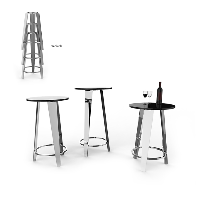 Collection: Stack Type: Cocktail table Code: CKT-STA-001 Dim: CKT-STA-001-1S – 600 x 865 (h), CKT-STA-001-2S – 600 x 965 (h), CKT-STA-001-3S – 600 x 1065 (h) Material: Tempered glass top, 304 stainless steel, polished
